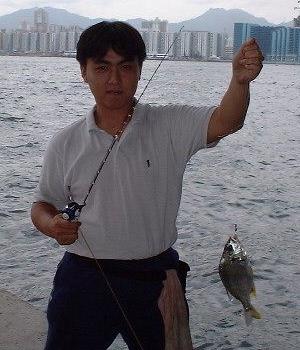 第一條中既係 3-4" 釘公,食埋黎果下非常好 feel ,成支竿 dup 晒,發揮 "J-調子" 既特點。笑到阿 Le' Dan 都收唔到絲,笑停左之後先慢慢收上黎。 之後青蛙見咁過隱,又立左去釣下,佢都中左幾條泥同石狗,玩到佢愛不釋手。佢仲笑支竿話中手板魚都唔知頂唔頂到添! 青蛙佢太睇晒小騎哩筏既殺氣同威力喇!