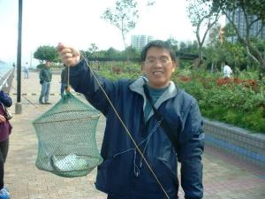 之後同佢傾多一陣,原來位大叔既釣具都唔係咩野好野,而且唔見左第三個階添。佢同我講佢支竿係會展返黎,而個絞都係幾十蚊既貨色。佢再一次証明釣技既重要,釣魚係一種有大眾化既運動,如果能力可以負擔得黎,買好小小既釣具獎勵自己固然係好,如果唔想投資咁多,平平地都有得玩。釣具、理論以及實踐同樣重要。 見到條斤頭木黃之後,我家姐問點解魚咁易釣,而我又成日都係白果返屋企? 真係比佢激到彈起! 其實呢個問題我都想知,起碼可以對証下藥改善下釣技丫嘛! 最後我叫我家姐去問董伯伯點解我成日都係白果,嘿~嘿~! 不過又難怪佢地既,佢地一黎到就見到阿大叔唔使三幾下手就左條魚上黎,咪以為好易中囉!