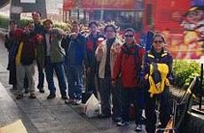 大約十時便上碼頭,我地要步行到釣點,有個牌寫住行二十分鐘就到。途中經過一D礁石, WaiWai 就立即就地取材,介紹下邊D係出水石,乜野叫打浪位。行行下,到佐一段原來要上條長命斜(得十三個人,威威果二十包三6五又點分得洒丫),我見佢拉車拉得幾辛苦,就發揮電波精神,幫佢一把啦。上完斜跟住又落斜,架手拉車咁重,拉住落斜好辛苦,惟有用個屎忽頂住架車慢慢落。嘩,人地就話頂魚頂到手軟o者,我就未釣就頂車頂到腳軟……行左大約十五分鐘,又見到個牌寫住仲有二十分鐘就到。天啊!!二十分鐘完又二十分鐘……仲有幾時先到呀!!??當時一滴風都無,個個都行到身水身汗,大家開始埋怨WaiWai (因WaiWai於出發前一晚留message說風很大,叫我地穿多D衫)。 途經一個公廁,大家停下休息。女隊員波子對WaiWai說:「又話大風,我入面著左五件衫呀!!」接著她便入公廁換衫。換完衫佢出番黎話入面仲有三件衫(嘩!唔使講埋比我地聽掛)。我地再出發,肥熊押尾,他嚇然發現公廁門口我地有人漏底個誘餌袋,原來是Killer 的。大家都打趣說Killer梗係想睇下波子幾時熱得滯,又要再除衫,所以連磯佬既靈魂「誘餌袋」都放底唔要。Killer, 你想唔用袋牙??! 待續……………