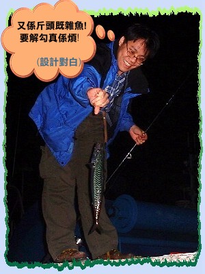 | 《咪係域當奴》 | 日 期 : | 2001年 11 月 | | 釣 點 : | 美國加州洛杉磯域當奴海灘附近一個X 竇 | | 釣 手 : | Le'Dan、Anthony | | 釣 餌 : | Markeral 魚肉+魚骨 ~ 夠晒腥! | | 釣 法 : | 浸籠唔覺意浸到。 | | 文 : Le Dan @ Feb 2002 到底?邊度中呢條油追呢? 咪係域當奴囉! 呢條咁既油追係阿 Anthony 浸籠唔覺意浸到,足足有成集手臂咁長又好重身,估計有四斤或以上。籠餌只係我地片完肉既 Mackereal,上到水就好滑,周圍走,攪左好耐先可以安撫佢心寧所受既創傷。呢條油追得個肥字,上水一D都唔惡,香港果D就惡死好多。 到底域當奴個海底仲有D乜野呢? 我地又釣晒所有魚種未呢?! 真係一個迷!